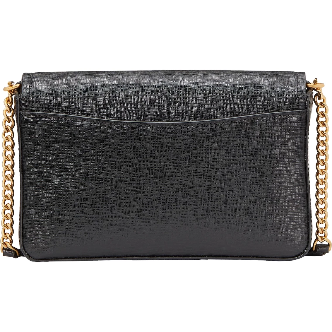 The New York Gala Stone Embellished Saffiano Leather Flap Chain Wallet features a zipper pocket, slip pocket, 6 credit card slips and warm goldtone hardware.
