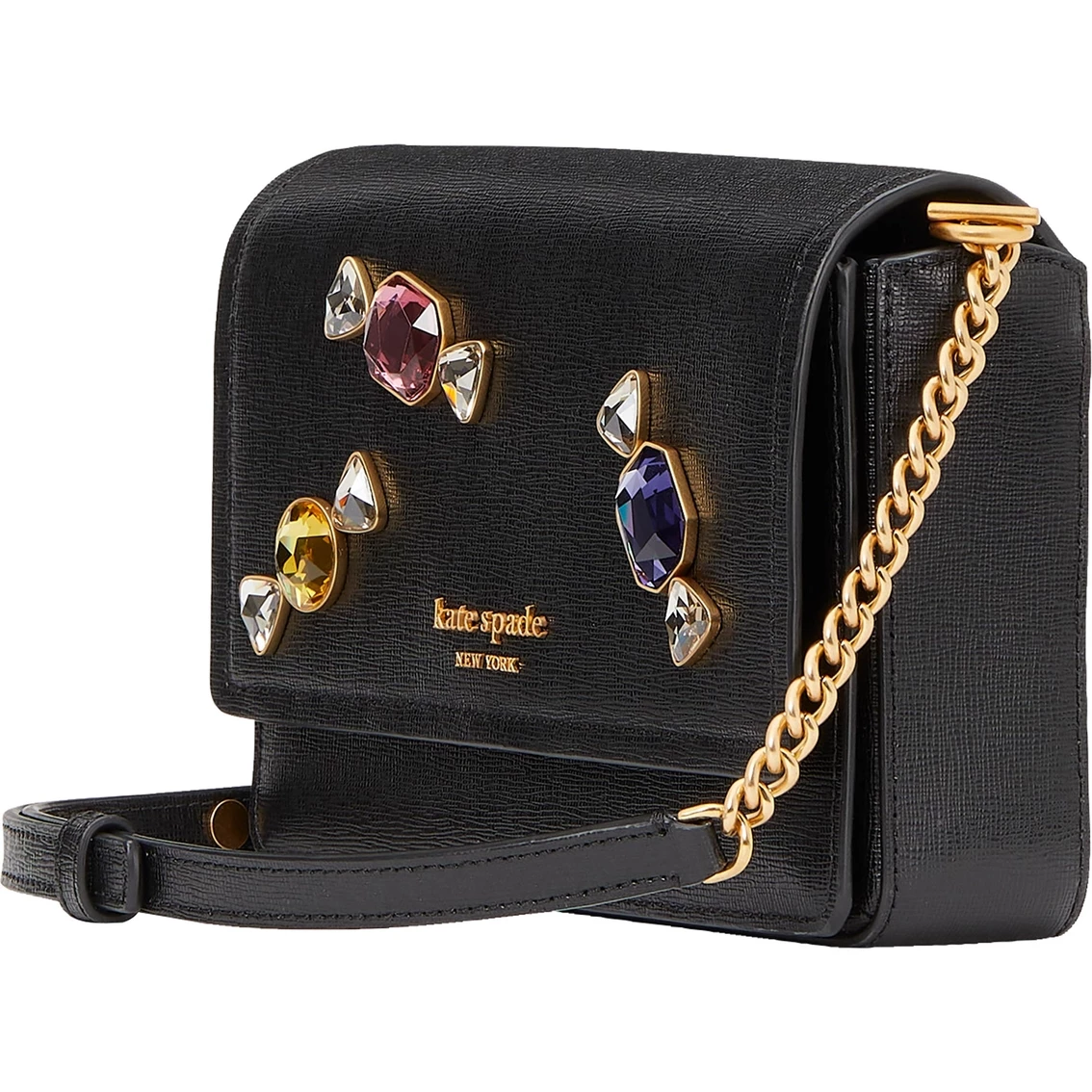 Kate Spade’s essential flap chain wallet just got a sweet makeover with a stone-embellished finish. Itβs the perfect fit for your on-the-go lifestyle.