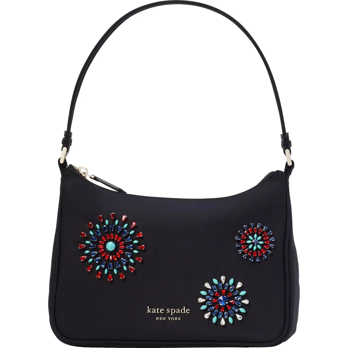 Kate Spade updated the crowd favorite Sam shoulder bag with crystal embellishments for a dazzling nod to fireworks. Sam The Little Better Fireworks Embellished Nylon Small Shoulder Bag features a zip-top closure, interior zipper pocket, and fits iPhone XS Max.