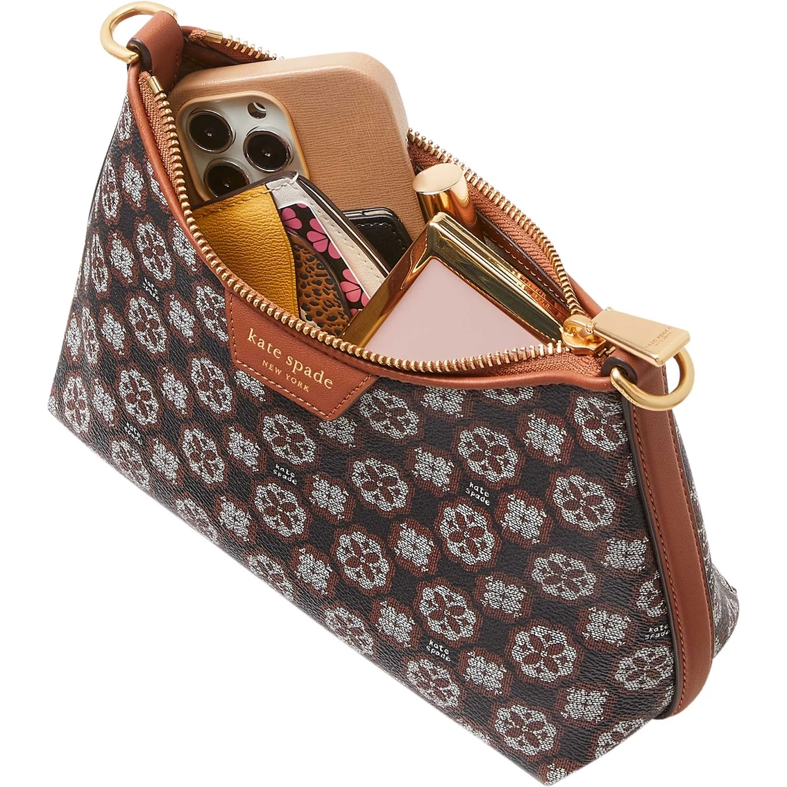 Kate Spade New York’s Spade Flower Monogram Coated Canvas Top Zip Crossbody features a slip pocket for convenient storage. It also has a metal pinmount logo. Style: K8941001.