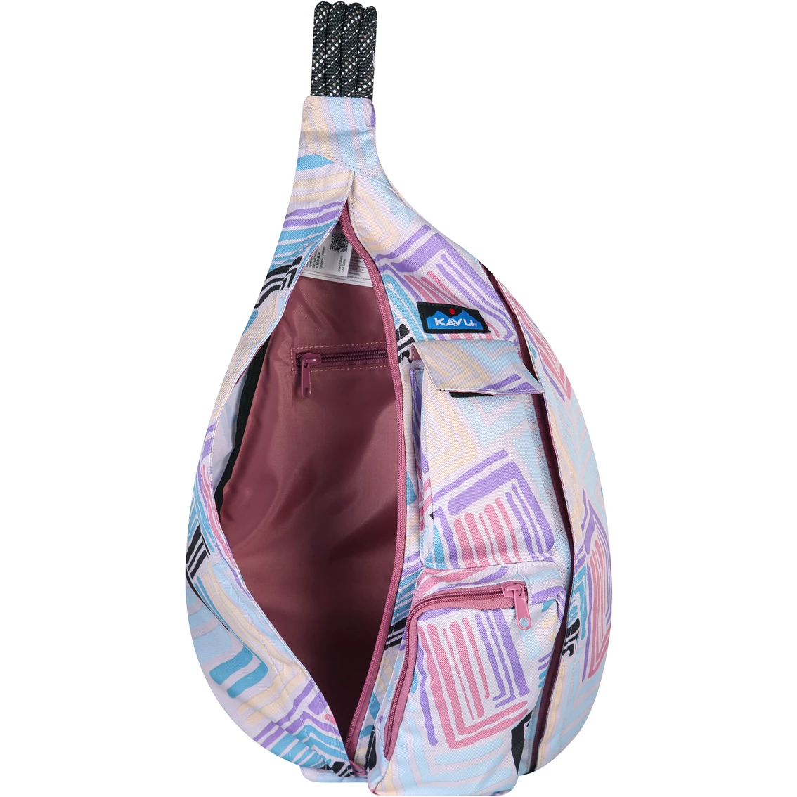 It also has an ultra-comfortable adjustable rope shoulder strap with side release buckle, two vertical zip compartments, two key or cell phone pockets, and a padded back with Kavu embroidery.