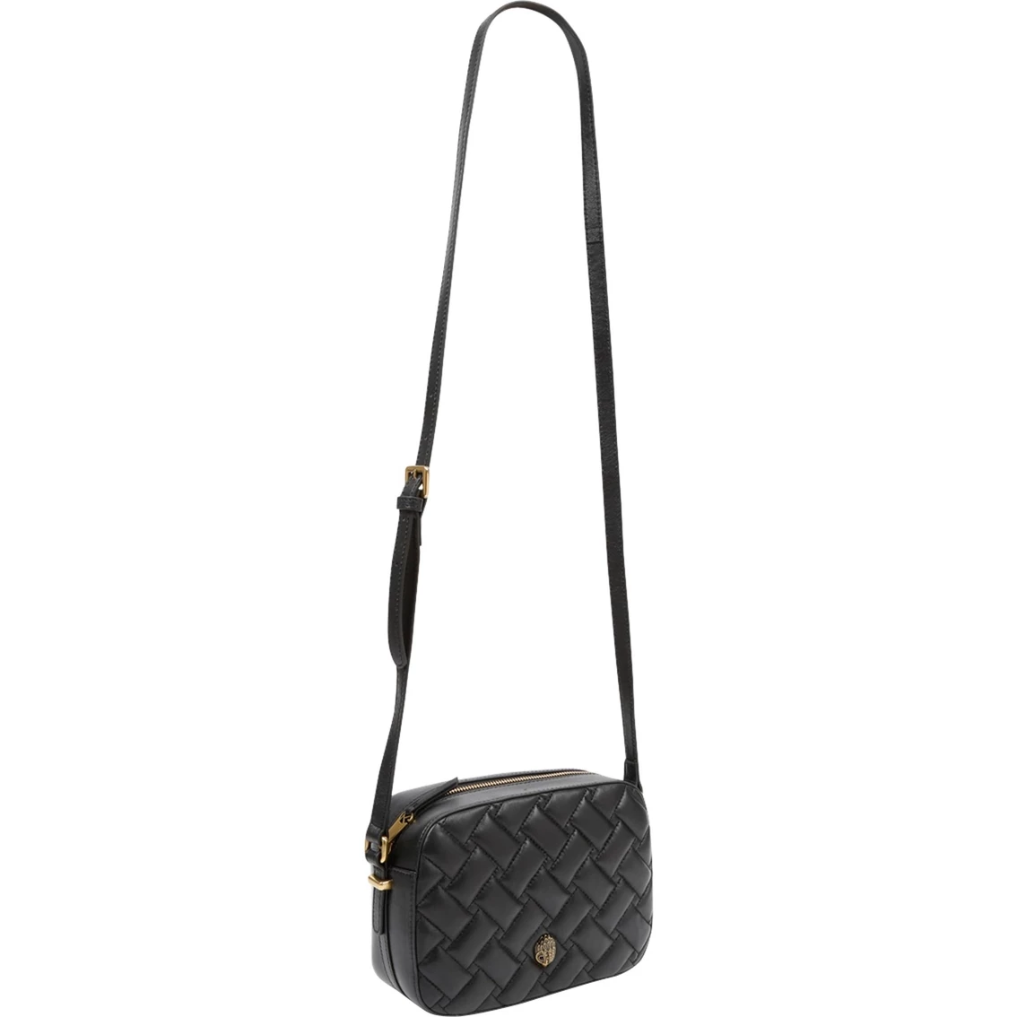 Elongated in style, the Kensington Crossbody bag with the quilted exterior finished with the iconic eagle embellishment in gold the interior is lined with open pocket. Style: 5294400109.