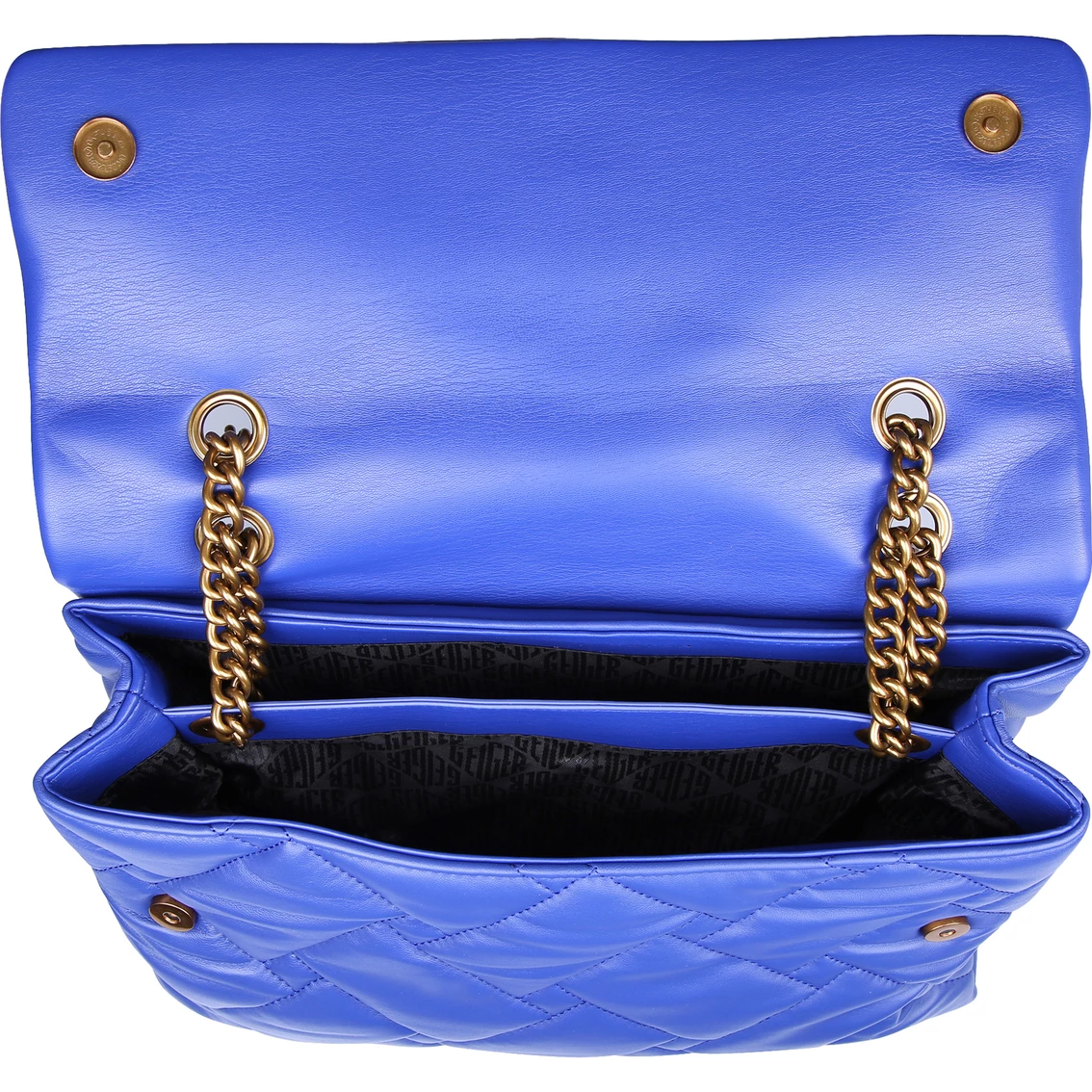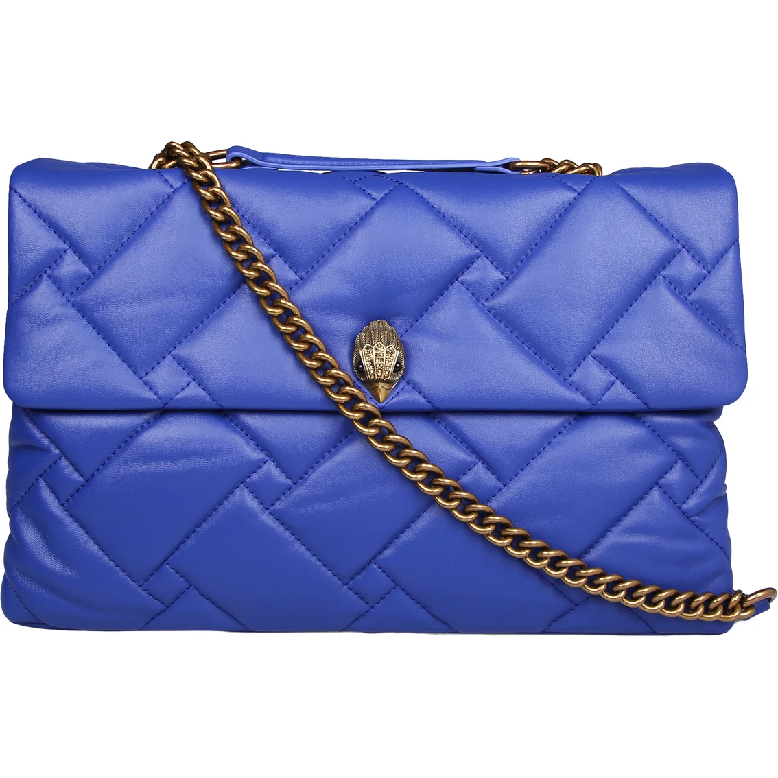 Large in size and style, the Kensington Soft XXL Purse is stitched in a blue quilted leather with iconic eagle head emblem on the flap in brass tone. The chain strap sits on the shoulder in brushed gold with leather panels for comfort. Style: 4708580109.