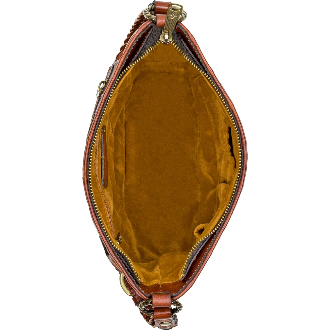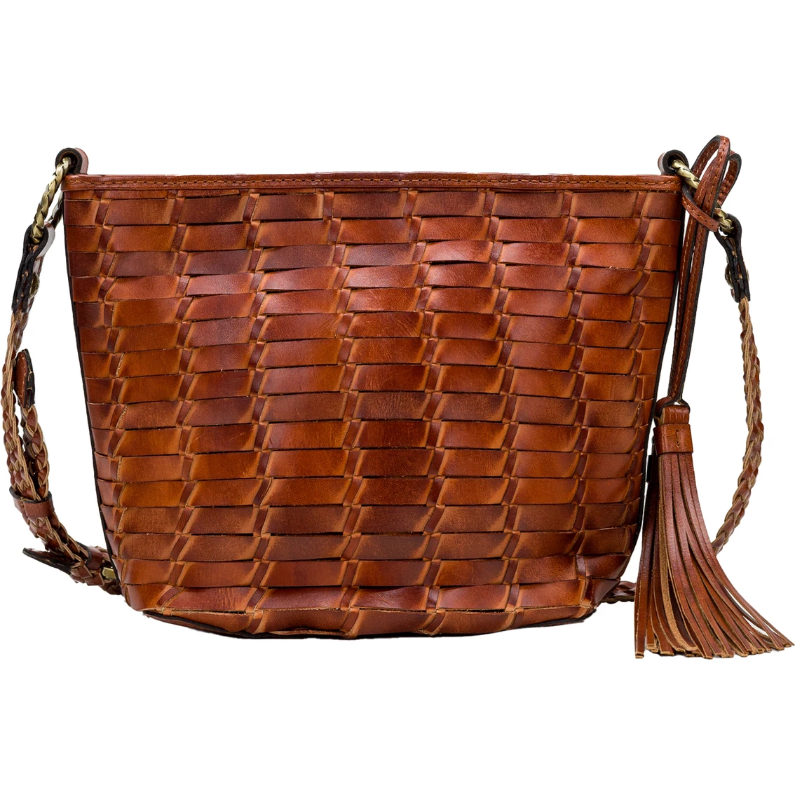 Simple, streamlined and totally essential, this Patricia Nash leather bag in beautifully woven leather has a long braided strap and tassels. This stylish bag is part of the Large Woven Collection. Style: P928189.