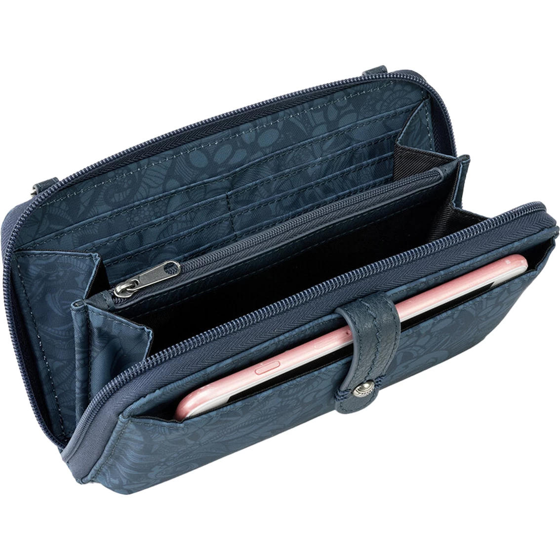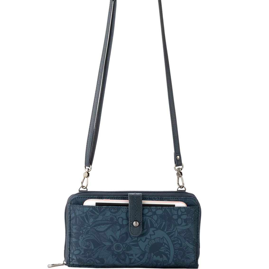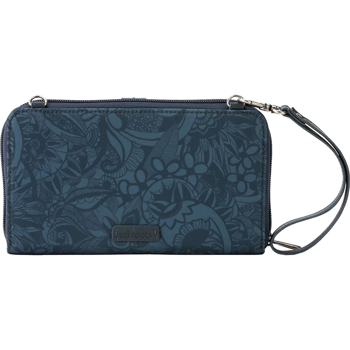 The Sakroots Large Smartphone Crossbody is made of Repreve eco twill with Repreve lining, featuring a main zipper closure, detachable wristlet strap and removable adjustable crossbody strap. Can be worn as a wallet, wristlet or crossbody bag. Antique silvertone hardware. Front phone pocket with snap closure. Interior contains sixteen credit card slots, two bill pockets and a zipper pocket. Fits most smartphones (iPhone 6s, 7, 8, X, 8+, XR, XS, 11, 11 Pro, 12, 12 ProGalaxy 9s, Galaxy 9S+ with thinner case). Style: 108780ISD.