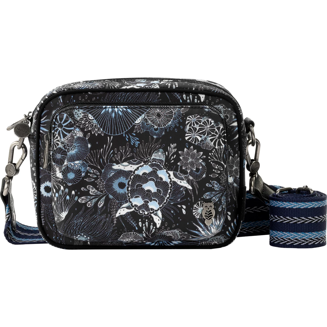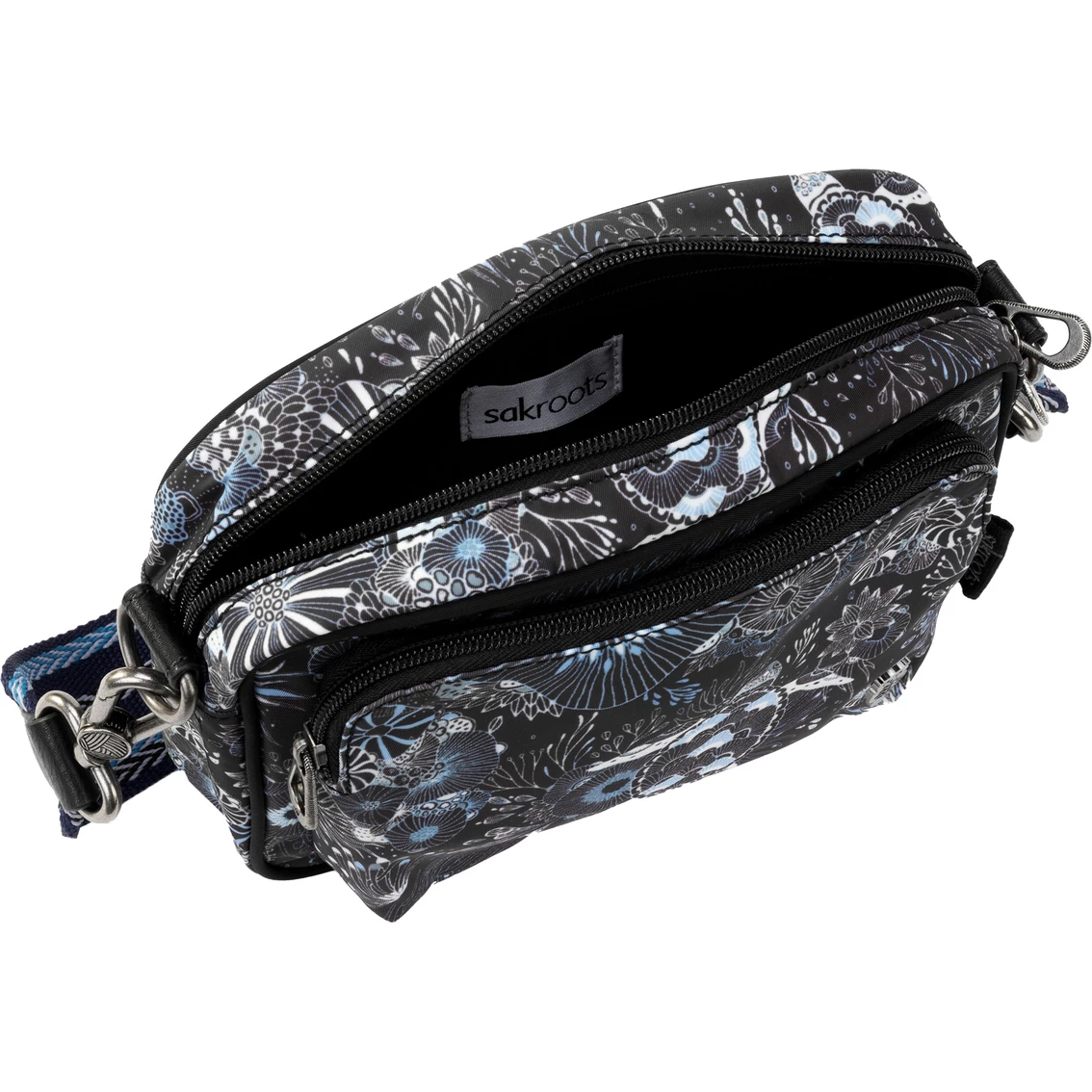 This compact bag is just big enough to stow your daily essentials, like a phone, keys and wallet. Made from Sakroots’ sustainable and sturdy EcoTwill, this bag comes with an adjustable strap that ensures a perfect crossbody fit. Pockets inside and out keep everything at your fingertips. This bag has antique silvertone hardware, a main zipper closure, one front zipper pocket and one back slip pocket. The interior contains a back wall zipper pocket and front wall multi-functional pocket. Style: 109549MDNTSEA.