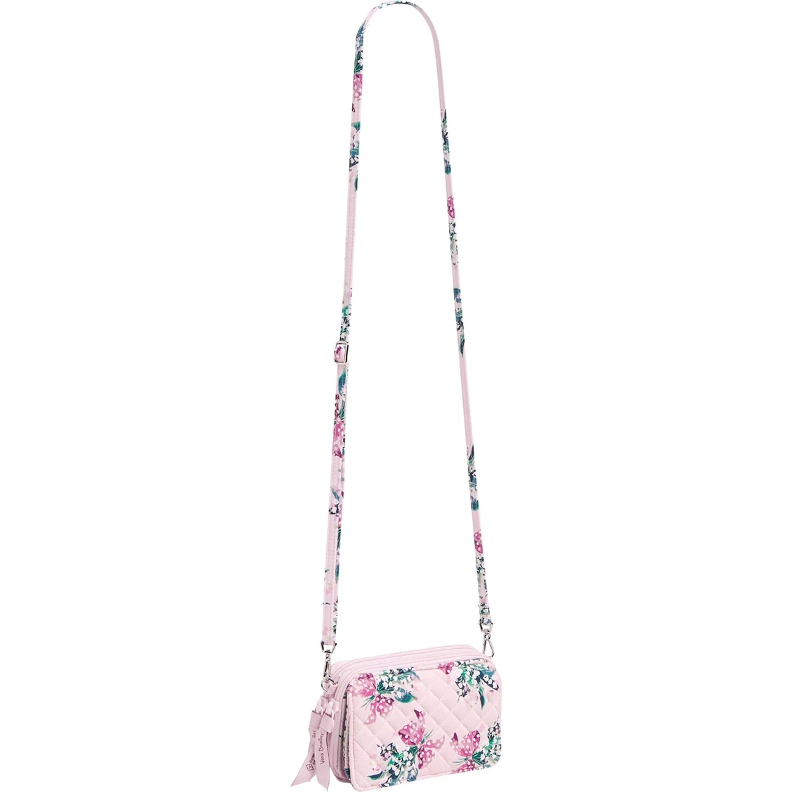 The name says it all! The Vera Bradley Happiness Returns Pink RFID All in One Crossbody is one easy, hands-free bag for all you do. Vera Bradley’s best-selling, versatile crossbody converts to a wallet and a wristlet with the switch of a strap and built-in RFID technology protects your credit and debit cards from data theft. In colorful, quilted cotton, this one’s a forever classic! The very best feature? This style is made from Vera Bradley’s Recycled Cotton! Made from 100% cotton, it’s everything you know and love about Vera Bradley’s go-to fabrication — the softness, the comfort, the vibrancy — now crafted with reclaimed fibers.