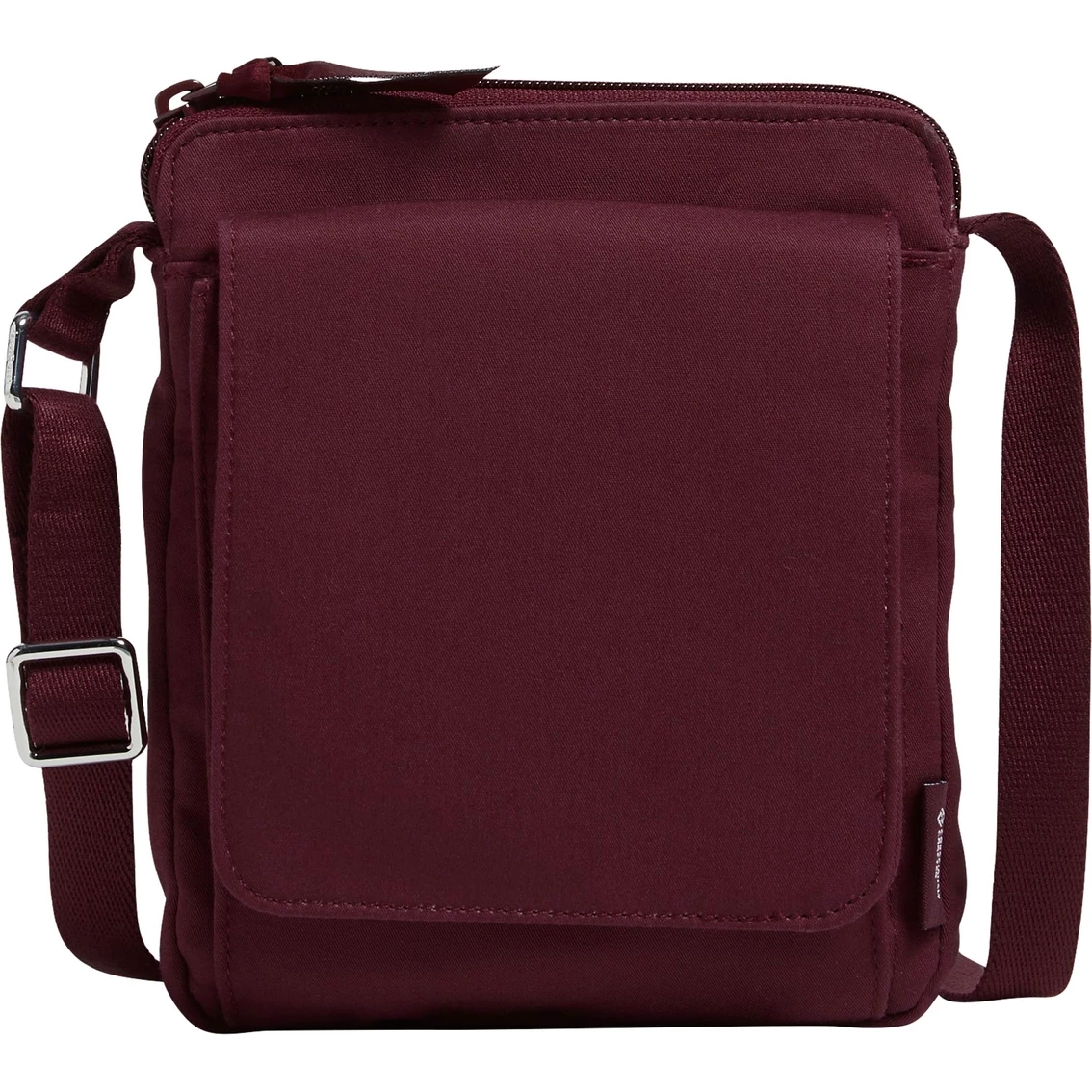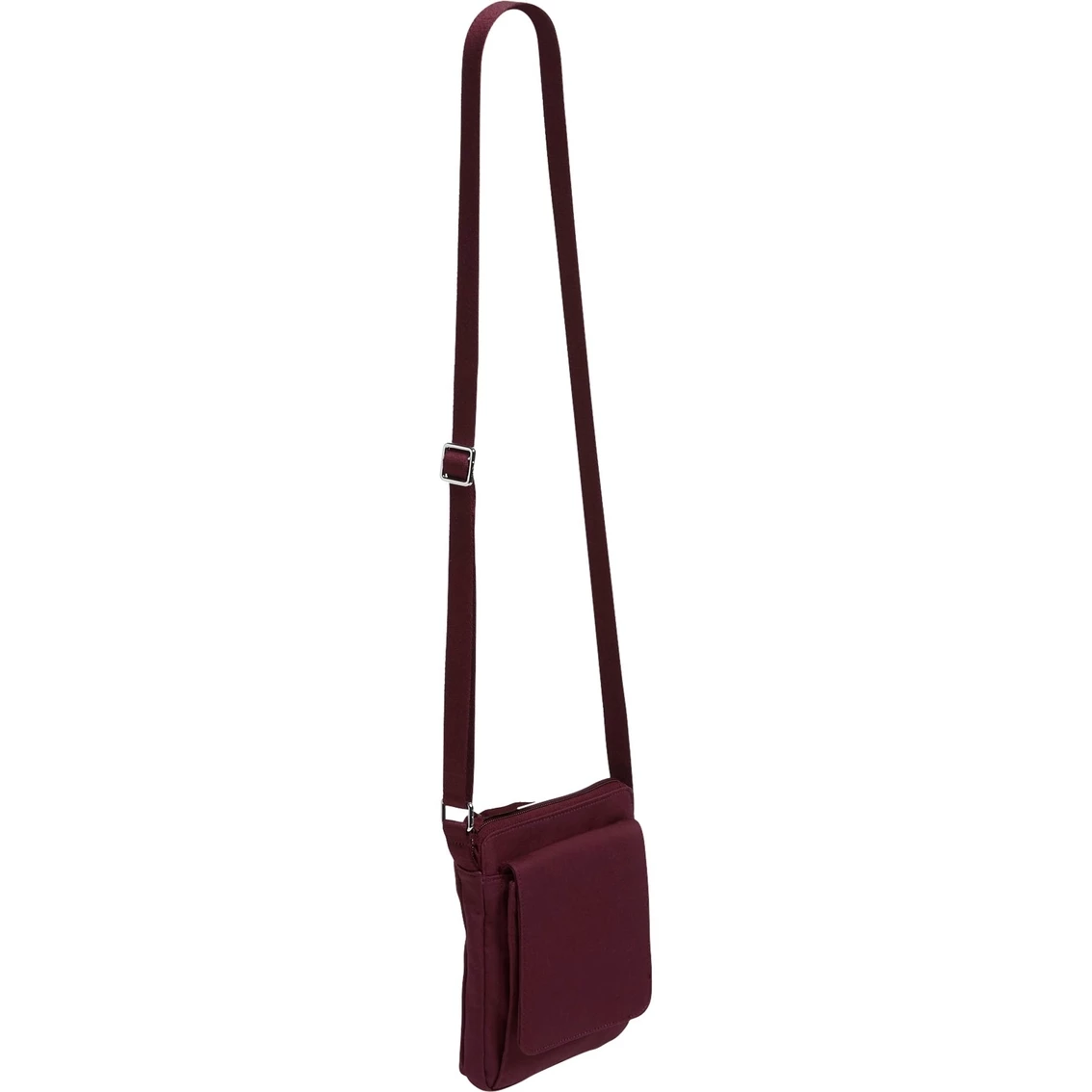 Consciously crafted with recycled cotton. This crossbody provides RFID protection for credit and debit cards. Exterior features one zip and one slip pocket. The interior features six card slips and an ID window. Complete with zip and magnetic snap closures.