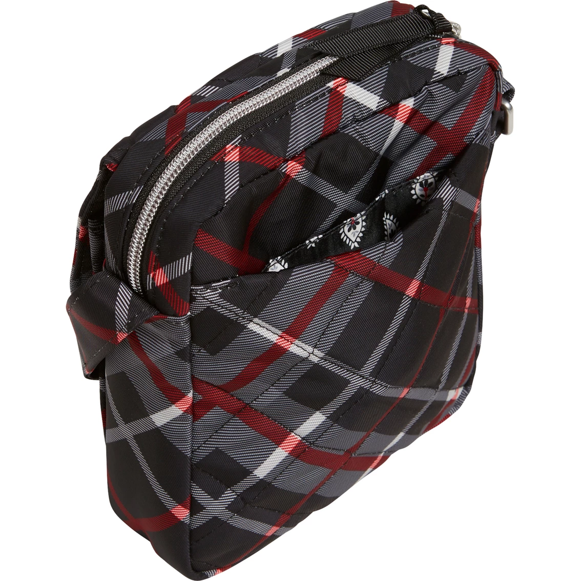 – Interior features a zip pocket