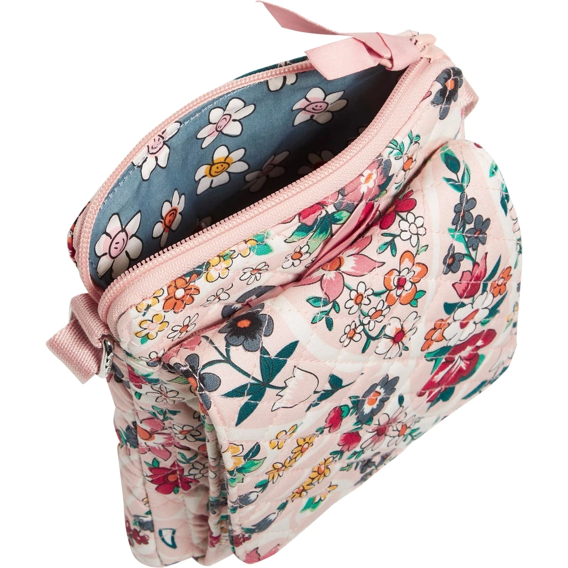 With all the components of a wallet built right into the bag, this compact Vera Bradley Prairie Paisley RFID Mini Hipster in Recycled Cotton keeps essentials orderly and organized.